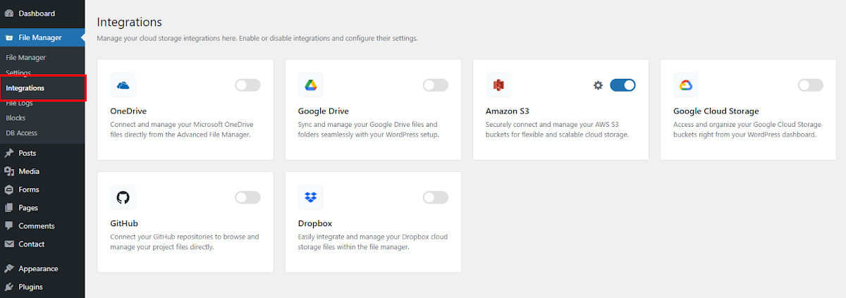 The Amazon S3 Integration in Advanced File Manager makes it easy to manage your files from your bucket right inside your WordPress dashboard. You can upload, view, and organize files without leaving your site.