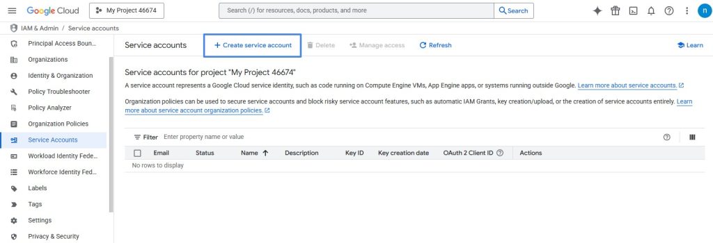 Follow the steps below to generate the required credentials from your Google Cloud Console: