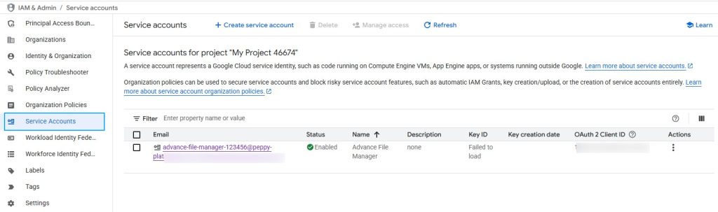Follow these steps to connect your Google Cloud Storage with Advanced File Manager.