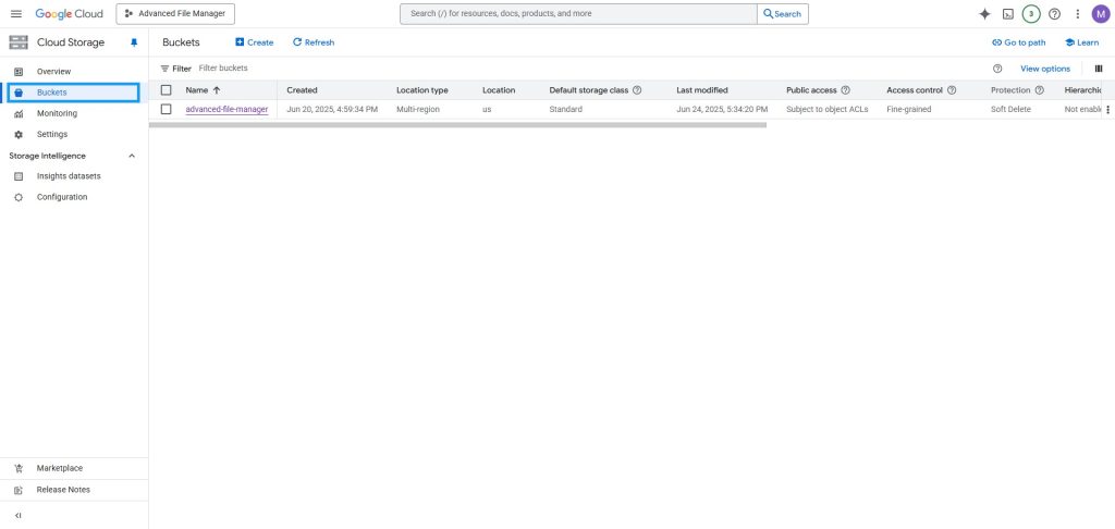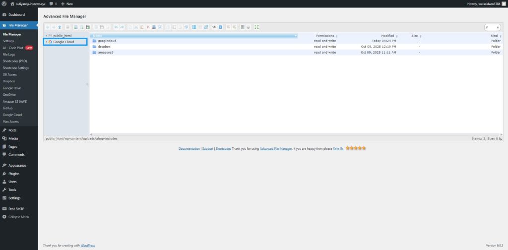 Once the setup is complete, you can access your Google Cloud bucket directly from the Advanced File Manager interface.